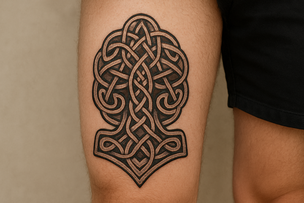 For men with Celtic heritage or simply admiration for warrior culture, these tattoos carry deep meaning. On the leg, they flow naturally, wrapping around the calf or stretching across the thigh in detailed designs.