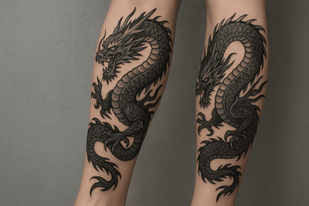 The leg’s length makes it the ideal location for a dragon tattoo. To add movement and drama, a dragon can stretch across the thigh or coil around the calf. Dragon tattoos are sure to turn heads, whether they are in the vibrant Japanese style or a striking black-and-gray pattern.