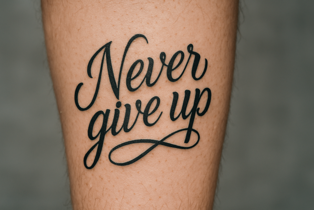Words can be just as powerful as images. Quotes like “Never give up” or single words like strength are popular choices for men.