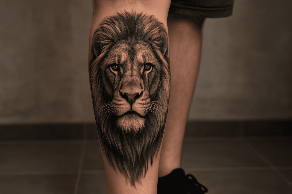 The leg provides enough space for detailed lion artwork. A realistic lion face on the thigh can look striking, while a roaring lion wrapping around the calf adds raw intensity. Either way, lion tattoos are bold statements of masculinity.