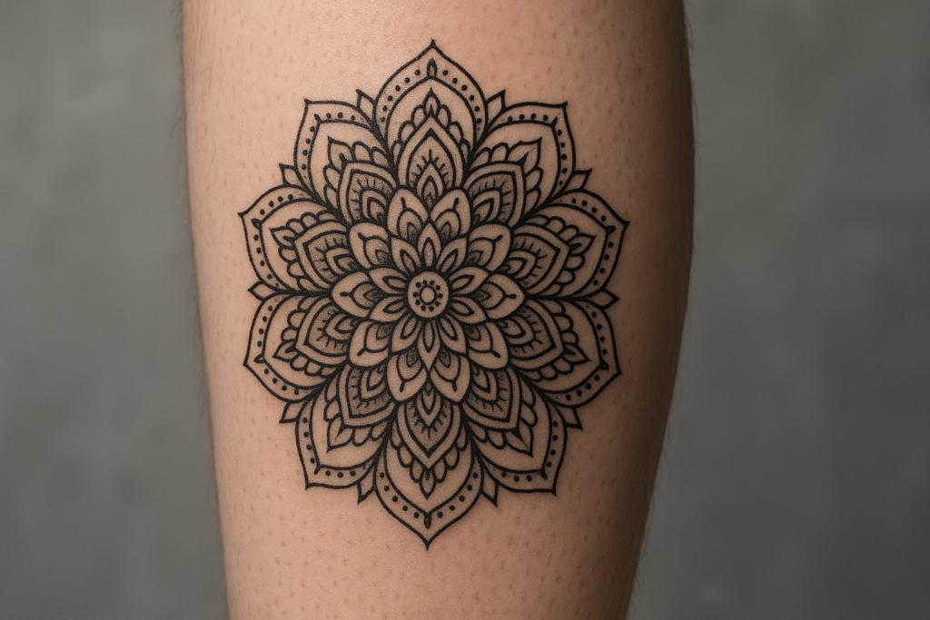 On the leg, mandalas look incredible because of the large space available. A mandala on the thigh can be detailed and eye-catching, while smaller mandalas stacked down the calf create a stylish sleeve effect.