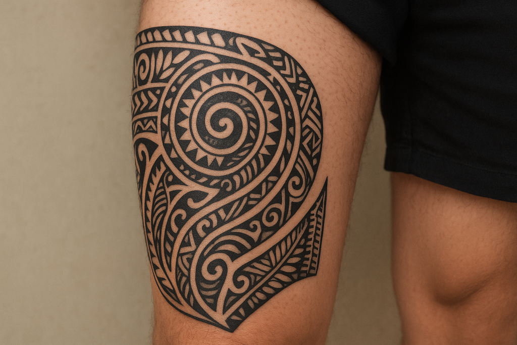 On the leg, tribal tattoos are especially powerful because of their natural flow. Thick black lines and bold shapes wrap around the thigh or calf, almost like armor. Some patterns represent strength, others symbolize protection, and some mark important life milestones.