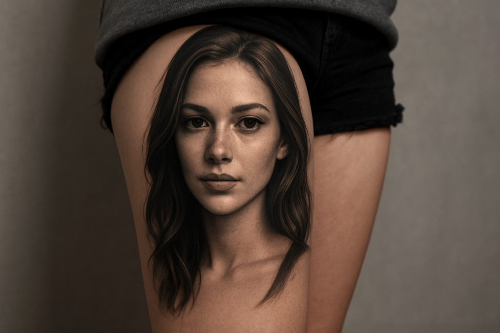 The leg, especially the thigh, is ideal for portraits because of its large surface area. It allows for fine details, realistic shading, and lifelike designs. A well-done portrait tattoo is more than just ink it is a living memory etched into your skin.