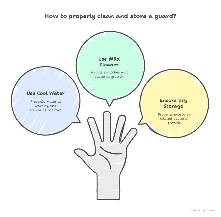 - Using hot water: Heat can warp the material, leaving your guard misshapen and uncomfortable. Always stick to cool or lukewarm water.